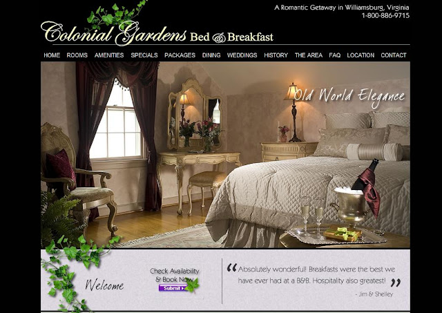 Colonial Gardens is a lovely historic home close by Colonial Williamsburg. Owner/Innkeeper Karen Watkins wanted a web site to complement the beautiful Inn, and chose Acorn Marketing as her site designer and builder. Karen was clear from the beginning that she wanted a site with all the newest features, and even brought to the table new ideas, such a live chat and links to SmugMug photo galleries, so that brides would be able to peruse photos taken by Karen at their weddings and even purchase them online. Karen worked ceaselessly to provide information to build the elegant and interesting site, including adding a custom Blog and Twitter.