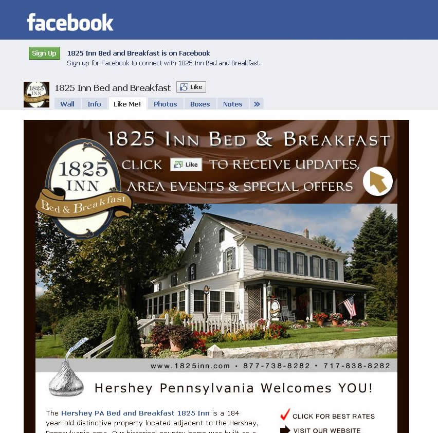 Beyond the Customized Landing Page, we carry your look and feel over to the maximum size image allowed on your wall (upper left hand corner). We use this visual opportunity to capture your visitors attention, again encouraging them to "LIKE" you and thus create an opportunity for you to provide information to this follower regarding your Inn and happenings in the area.