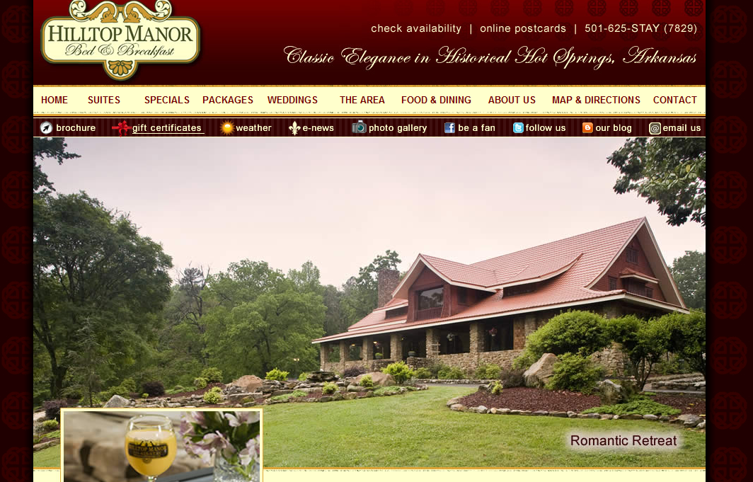 Hilltop Manor, a Hot Springs Bed and Breakfast recently came to Acorn for a new design. Hilltop had been an Acorn marketing (SEO) customer for a while, but was looking for the punch of a new design combined with video, new photography and social media.