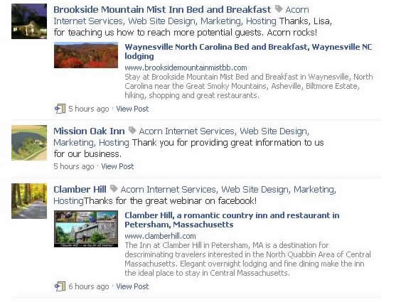 See what our attendees shared (after they learned how on the Webinar) on our Acorn Marketing Facebook Wall!