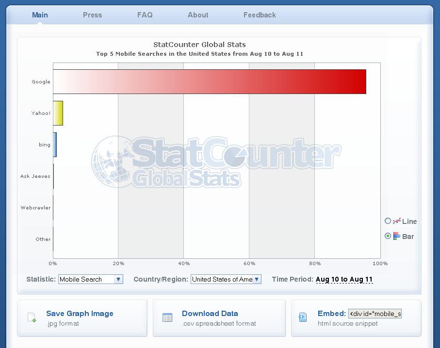 Here are a few of the results for the *various reports I ran that I thought would be beneficial for Innkeepers and Small Business Owners. You may also go directly to http://gs.statcounter.com and run additional reports that you might be interested in.